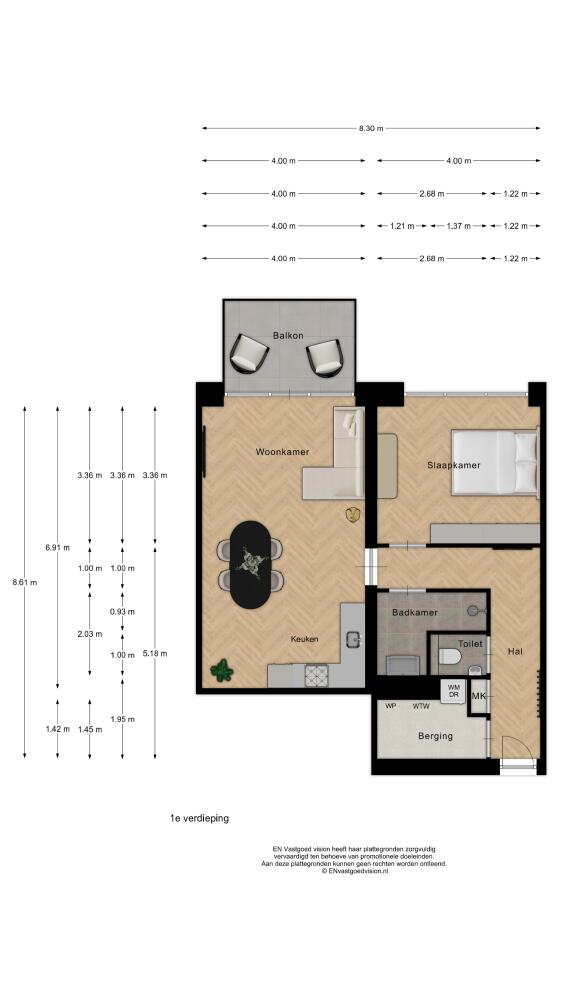 Kamers 2 kamers (1 slaapkamers)