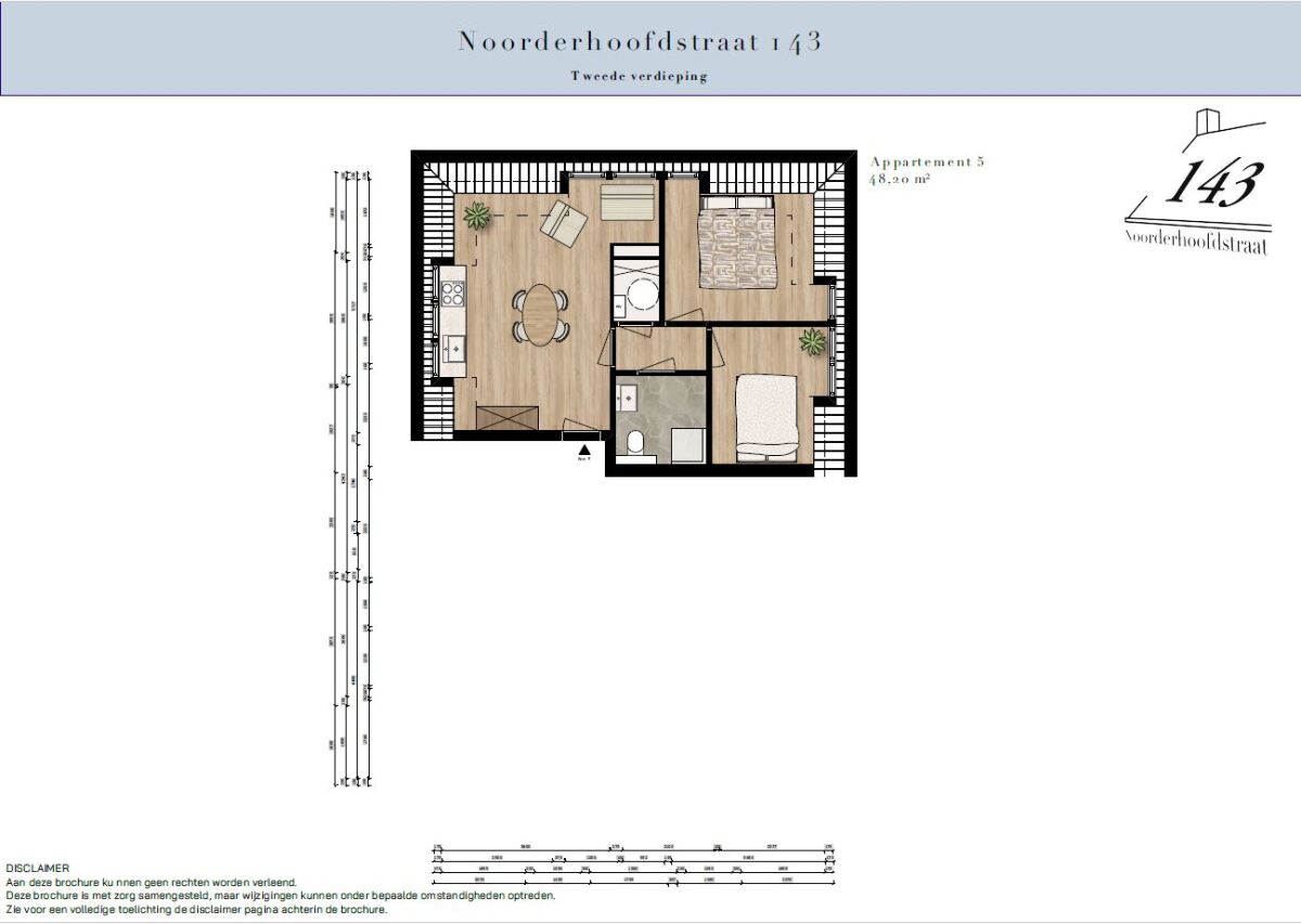 2e Etage: entree appartement. Gang. Fris betegelde badkamer en toiletruimte, voorzien van inloopdouche en wastafel. Slaap- annex werkkamer met dakkapel. Hoofdslaapkamer met dubbele dakkapel. Technische/ facilitaire ruimte. Woonkamer met (casco op te leveren) open keuken. Dubbele lichtinval door dakkapellen.