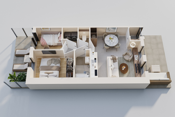 - De appartementen beschikken over een ruime buitenruimte
