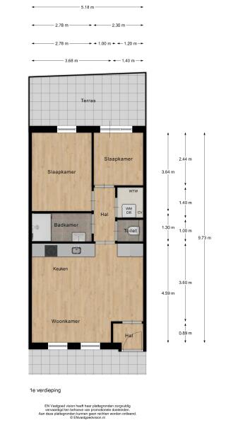 Verdieping: brede galerij met eigen buitenruimte (5 m2) pal voor dit appartement.
