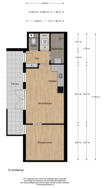 Appartement: entree. Hal. Toiletruimte. Berging met aansluitingen wasmachine en -droger. Installaties (onder meer WTW). Badkamer met inloopdouche en wastafel. Lichte living met dubbele openslaande deuren naar de buitenruimte. Voorzieningen voor een open L-vormige keuken. Slaapkamer (12 m2).