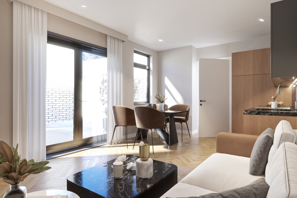 Dit tweekamerappartement bevindt zich in de stenen uitbouw van het oorspronkelijke pand en wordt compleet gerenoveerd. Deze compacte woning heeft één slaapkamer, perfect voor singles of stellen. De buitenruimte ligt aan de entree, met zicht op de binnenplaats. De (casco op te leveren) open leefkeuken is heerlijk licht en ruim. De slaapkamer heeft de badkamer en-suite. Het separate toilet bevindt zich in de hal. Moderne installaties en WTW vormen vaste ingrediënten voor lage energiekosten en minimale belasting van milieu, natuur en klimaat.
