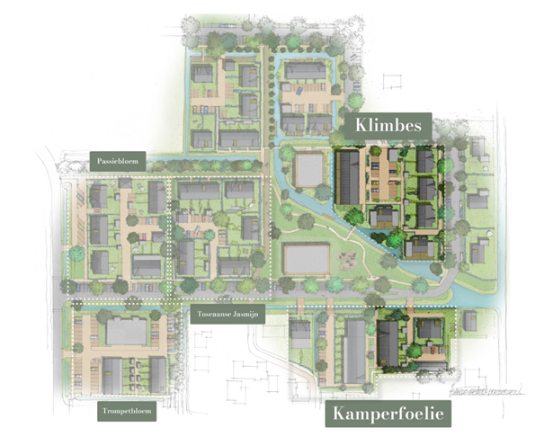 Heulpark fase 2 omvat 22 woningen uit het buurtje Klimbes bestaande uit 10 twee-onder-een-kapwoningen en 12 beneden- & bovenwoningen en 7 semibungalows in het buurtje Kamperfoelie.