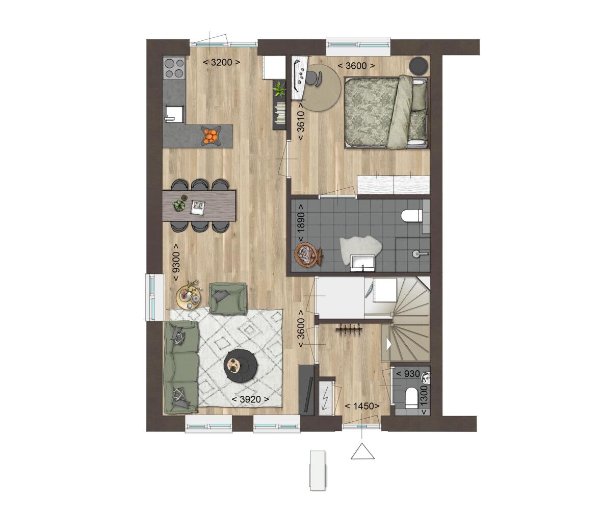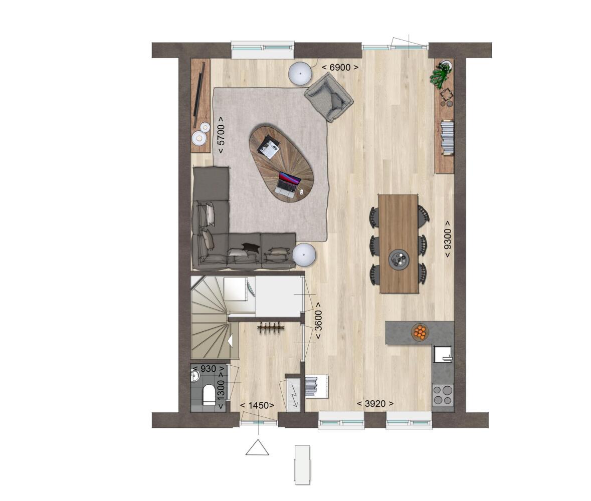 - Entree met toegang tot de woonkamer, het toilet, en de trapopgang naar de verdieping