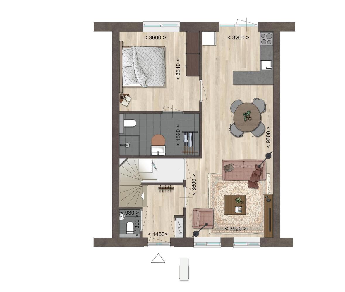 - Entree met toegang tot de woonkamer, het toilet en de trapopgang naar de verdieping