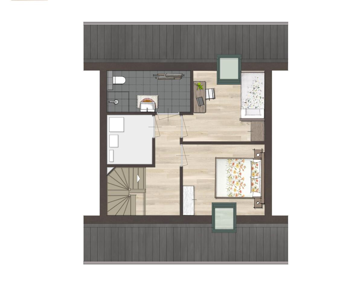 - Ruime zolderverdieping bereikbaar via een vaste trap