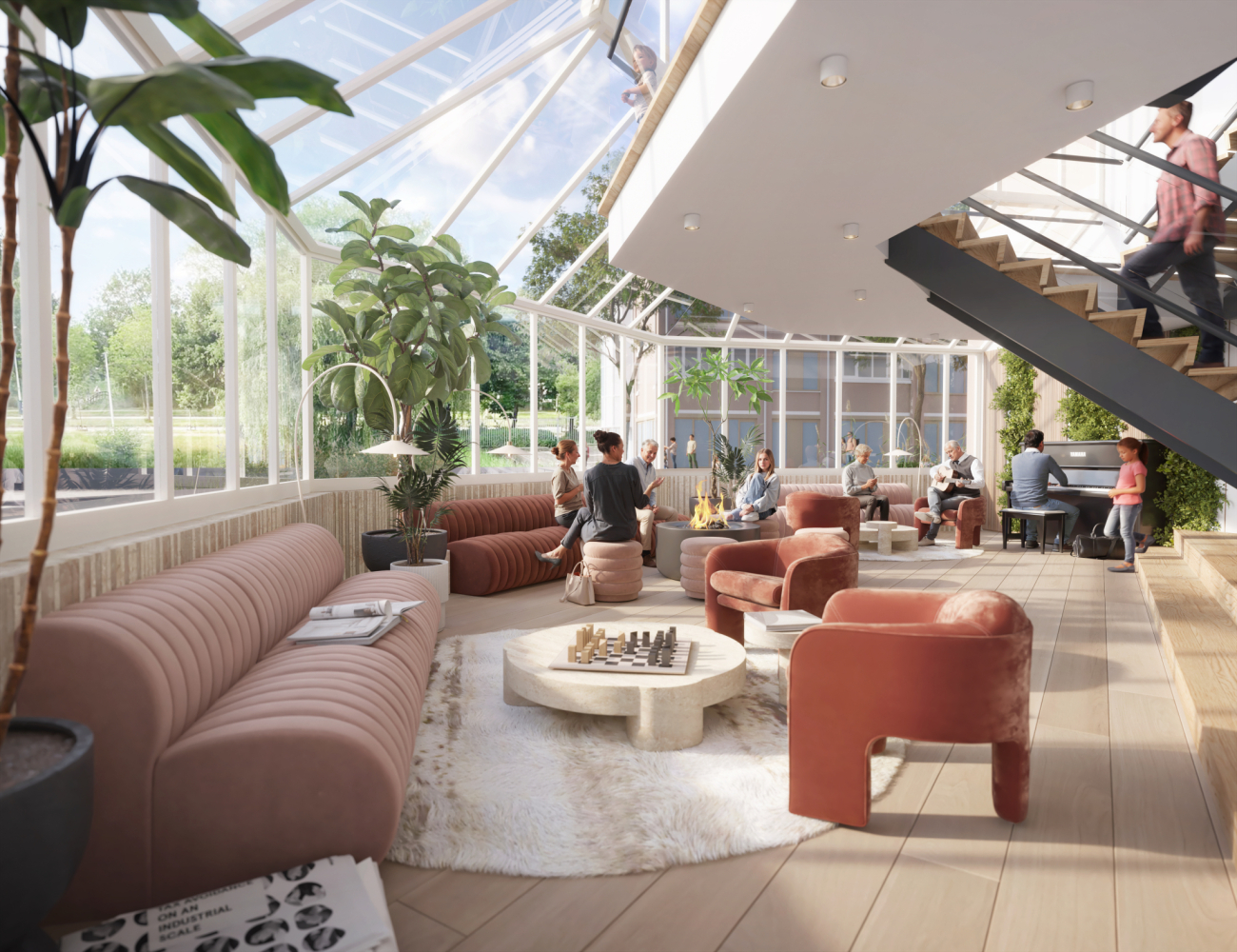In de woonwijk Camminghaburen in Leeuwarden ondergaat een kantoorpand een bijzondere transformatie tot een modern appartementengebouw. Het plan omvat 43 koopappartementen en circa 55 huurappartementen, waarbij speciale ontmoetingsruimtes worden toegevoegd, zoals een gezellige huiskamer, lounge, werkplek en sportruimte. Deze vernieuwende aanpak creëert een aantrekkelijke woonomgeving voor een brede doelgroep, van jong tot oud!