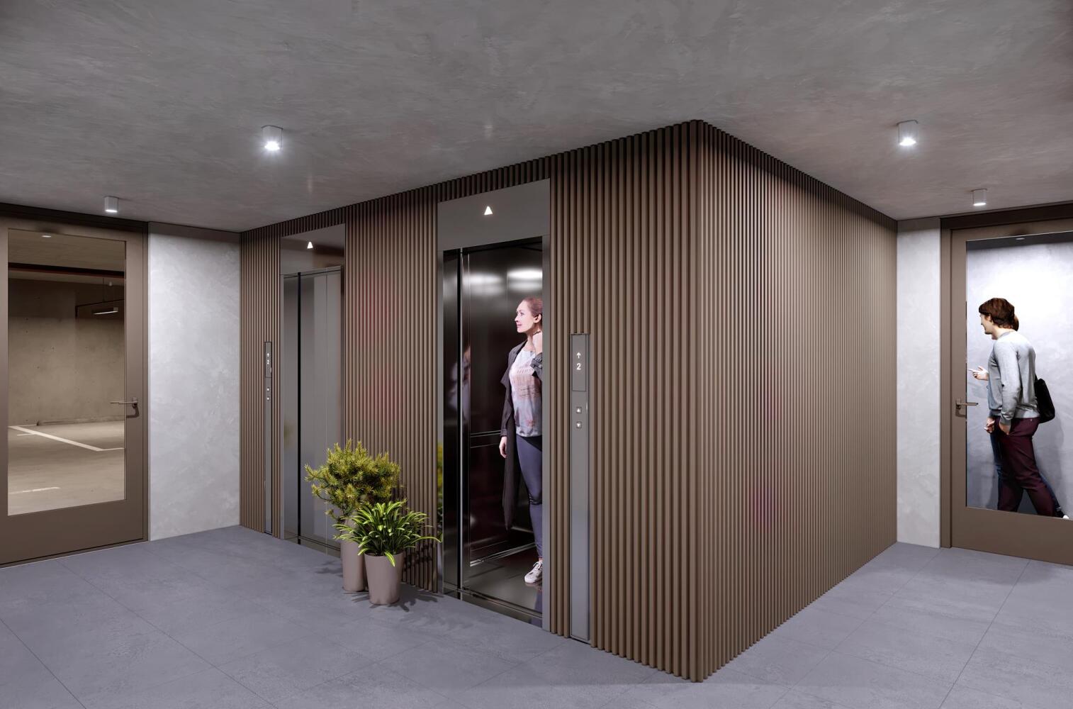 Een parkeerplaats is optioneel en los te koop voor € 35.000,-- per stuk. Vanuit de garage brengen twee trappenhuizen met lift u direct naar uw woonverdieping.