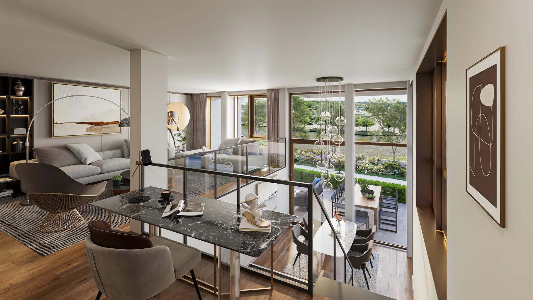 Op de bovenste lagen van de woongebouwen zijn teruggetrokken gevels aangebracht waardoor de bouwblokken luchtiger ogen en tegelijkertijd de mogelijkheid creëren om grotere appartementen en penthouses met ruime terrassen met hangend groen te bouwen, van waaruit u een perfect uitzicht over het water heeft. Bij de keuze van de materialen is eerst gekeken naar kwaliteit. Voorbeelden hiervan zijn de entrees: dubbel hoog, waardoor men royaal binnenkomt. Alle appartementen en penthouses hebben ramen van vloer tot plafond. Zo ontstaat een perfect uitzicht op bijvoorbeeld de aangelegde tuin waar veel groen wordt bijgeplant.