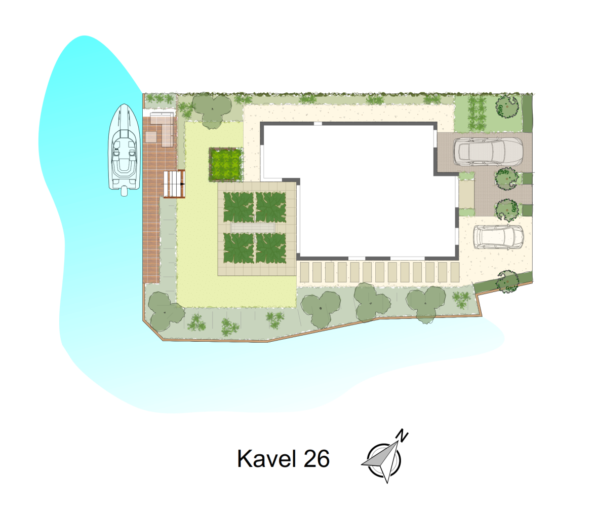 De eigentijdse architectuur, het platte dak en het strakke lijnenspel zorgen voor een ruimtelijk effect en geven veel ruimte op de verdieping. Hier bevinden zich dan ook drie ruime slaapkamers, een riante badkamer en een separaat toilet. Tjalk biedt u een thuishaven waar u geniet van unieke vergezichten, de avondzon en optimaal woonplezier aan het water. Ervaar de verschillende seizoenen en weet dat uw boot altijd dichtbij is.