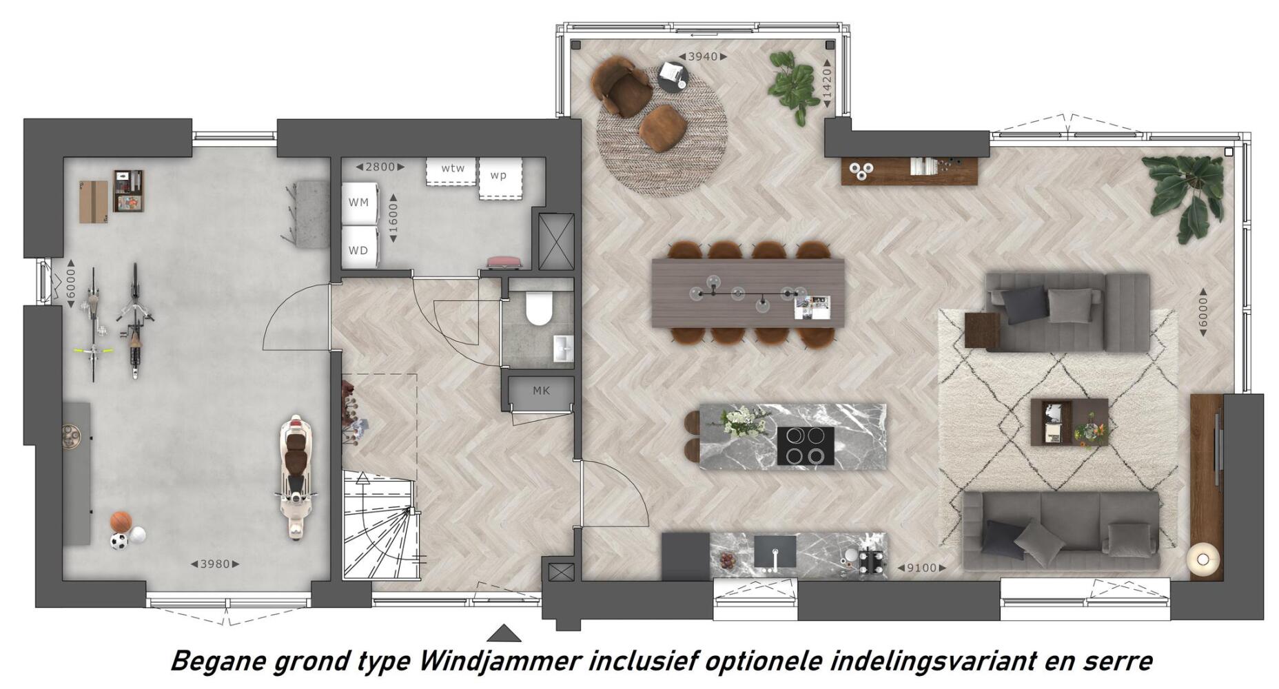 De woning voelt direct als een thuis. De ruime hal en vide verwelkomen u zodra u naar binnen stapt. De openslaande deuren en grote raampartijen in de riante living en keuken halen het buitengevoel naar binnen. U ervaart er een gevoel van ruimte en van vrijheid. Met Windjammer kunt u alle kanten op. Zo horen een extra slaap- en badkamer op de begane grond en uitbreiding met een stijlvolle glazen serre tot de mogelijkheden. Deze modern vormgegeven woning met plat dak en strakke lijnen is voorzien van een bijzonder dakterras met pergola dat grenst aan de slaapkamers. U ontwaakt in alle rust comfortabel en middenin de natuur.