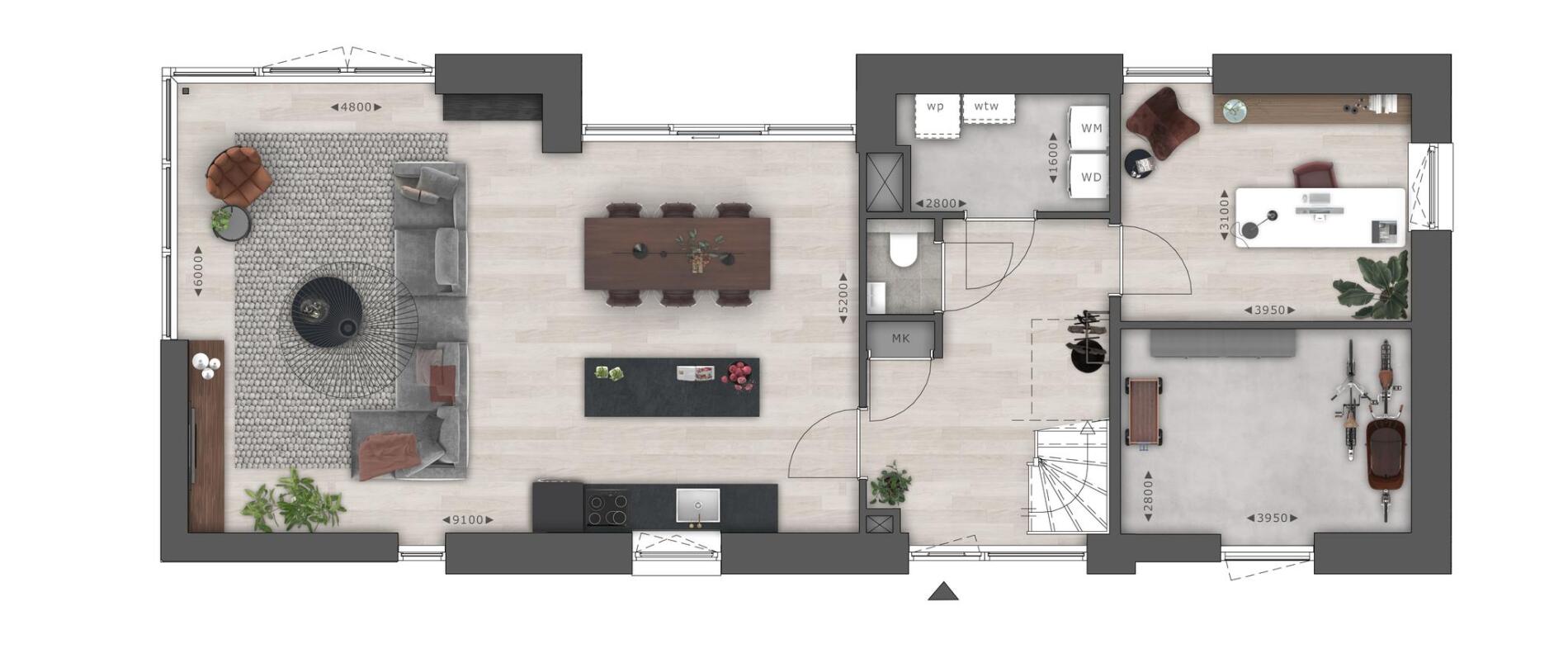- Voorzien van een bodemwarmtepomp i.c.m. vloerverwarming en koeling.