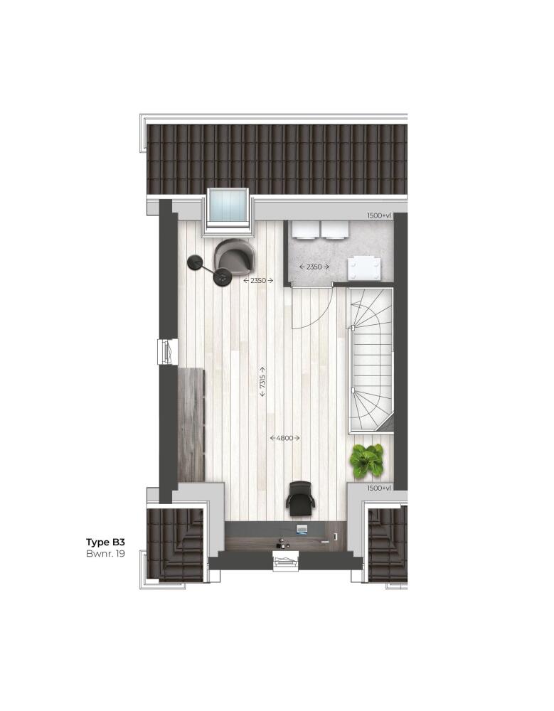 Hoekwoning type B3 met een beukbreedte van 5,10 meter is ruim van opzet en direct bereikbaar vanuit een parkeerhof aan de achterzijde van de woning. De achtertuin ligt op het westen. De topgevel en het dakraam van bouwnummer 19 zorgen voor extra oppervlakte en daglicht op de tweede verdieping.