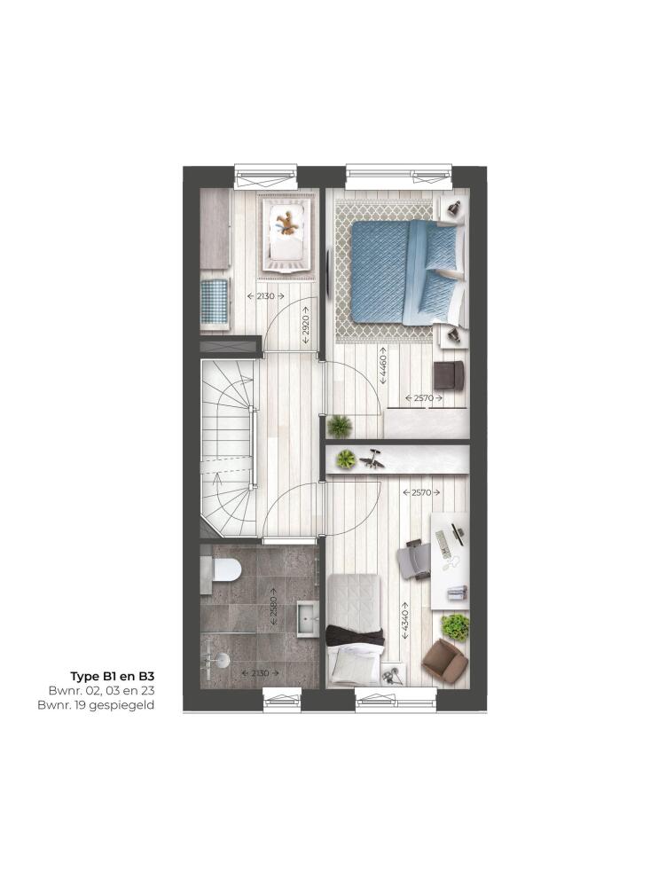 Hoekwoning type B1 met een beukbreedte van 5,10 meter is ruim van opzet en direct bereikbaar vanuit een parkeerhof aan de achterzijde van de woning. Bouwnummer 23 heeft een tuin op het westen.
