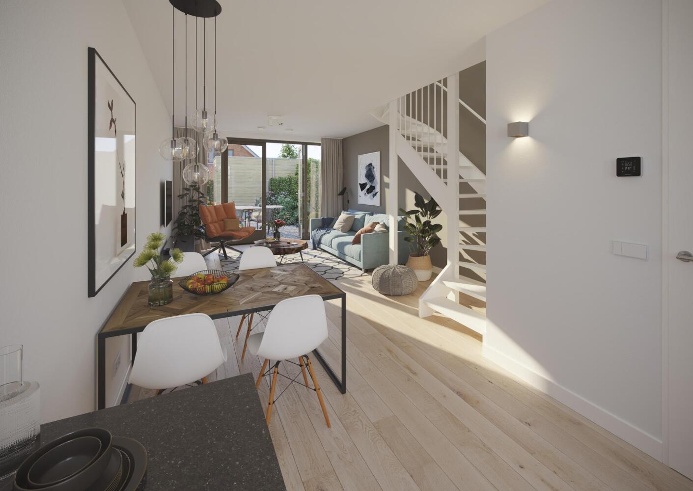- Keuken aan de voorzijde en een tuingerichte woonkamer met veel daglicht
