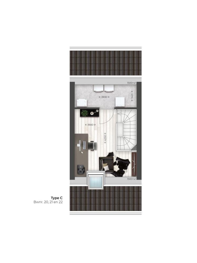 - Tweede verdieping standaard met dakraam en separate technische ruimte