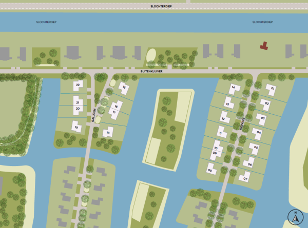 • Via sluis De Zeilen, de Slochterdiep en het Eemskanaal vaar je direct vanaf jouw eigen kavel naar de binnenstad van Groningen.