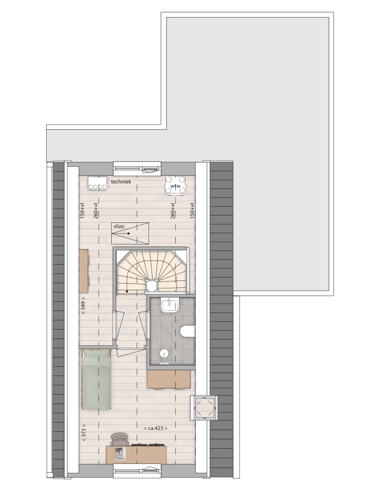 Let op: het door de ontwikkelaar opgegeven gebruiksoppervlak kan afwijken van het daadwerkelijke woonoppervlak! Bij het gebruiksoppervlak kunnen ook bergzolders, bergingen of andere ruimten zijn gerekend, terwijl deze volgens de NEN2580 niet als woonoppervlak zijn aan te merken. Afhankelijk van de mogelijkheden kunt u bijvoorbeeld voor een bergzolder een dakraam toepassen, waardoor deze ruimte eventueel alsnog als woonoppervlak kan worden gerekend. Vraag de makelaar voor meer informatie en eventuele mogelijkheden.