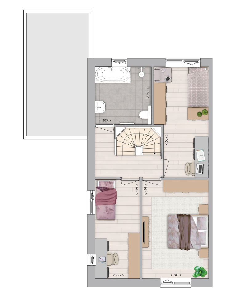 Let op: het door de ontwikkelaar opgegeven gebruiksoppervlak kan afwijken van het daadwerkelijke woonoppervlak! Bij het gebruiksoppervlak kunnen ook bergzolders, bergingen of andere ruimten zijn gerekend, terwijl deze volgens de NEN2580 niet als woonoppervlak zijn aan te merken. Afhankelijk van de mogelijkheden kunt u bijvoorbeeld voor een bergzolder een dakraam toepassen, waardoor deze ruimte eventueel alsnog als woonoppervlak kan worden gerekend. Vraag de makelaar voor meer informatie en eventuele mogelijkheden.