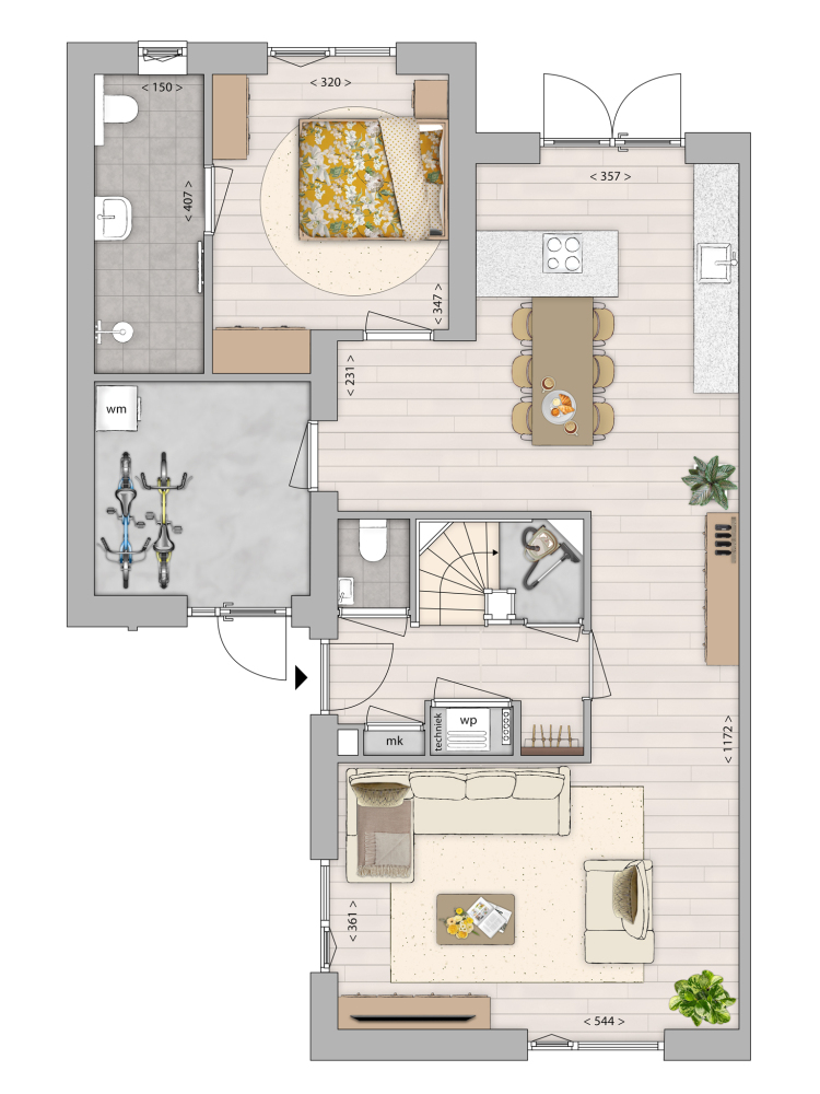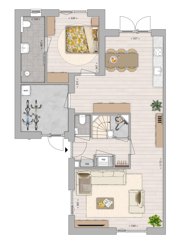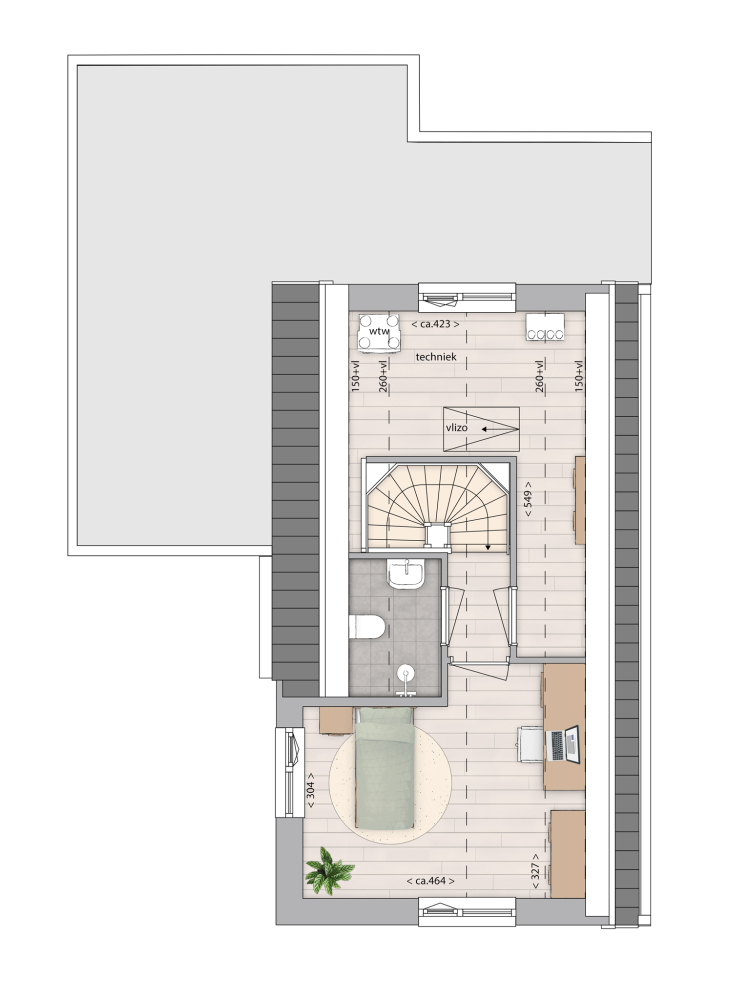 Deze online presentatie en eventuele bijlagen zijn samengesteld aan de hand van de ons bekende gegevens en afbeeldingen. Samen met de artist impressions geven zij een indruk van de toekomstige situatie. Zij pretenderen niet een exacte weergave te zijn van het uiteindelijke product. Rechten kunnen dan ook niet aan deze presentatie of bijlagen ontleend worden. Eventueel genoemde of getoonde afmetingen zijn indicatief.