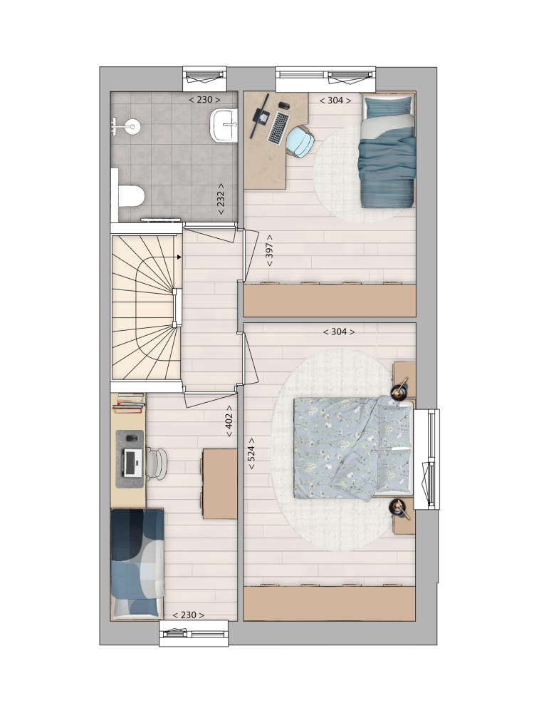Let op: het door de ontwikkelaar opgegeven gebruiksoppervlak kan afwijken van het daadwerkelijke woonoppervlak! Bij het gebruiksoppervlak kunnen ook bergzolders, bergingen of andere ruimten zijn gerekend, terwijl deze volgens de NEN2580 niet als woonoppervlak zijn aan te merken. Afhankelijk van de mogelijkheden kunt u bijvoorbeeld voor een bergzolder een dakraam toepassen, waardoor deze ruimte eventueel alsnog als woonoppervlak kan worden gerekend. Vraag de makelaar voor meer informatie en eventuele mogelijkheden.