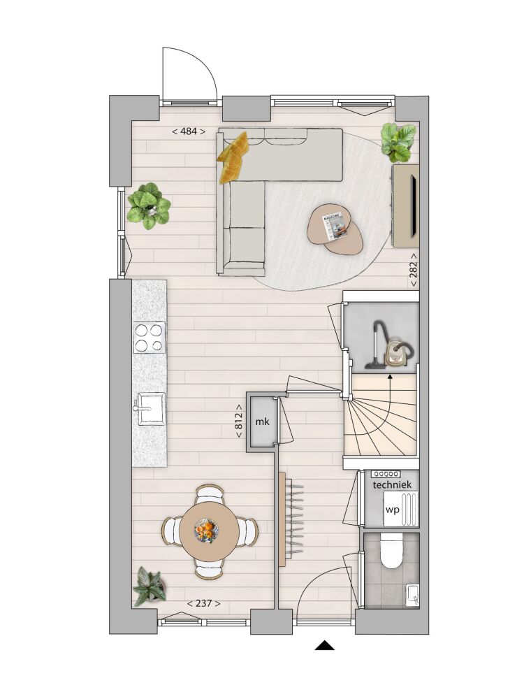 Even binnenkijken? Via de voordeur aan de voorkant stap je in de hal met toegang tot het toilet, meterkast, technische ruimte, deur naar de woonkamer en de trap naar de 1e etage. Het woongedeelte is een open ruimte met plek voor een fijne leefkeuken met openslaande deur naar de straatkant. Creëer aan de achterkant een lekkere zithoek en hier zit nog een openslaande deur naar de ruime tuin. Heerlijk! In de houten berging heb je extra bergruimte.