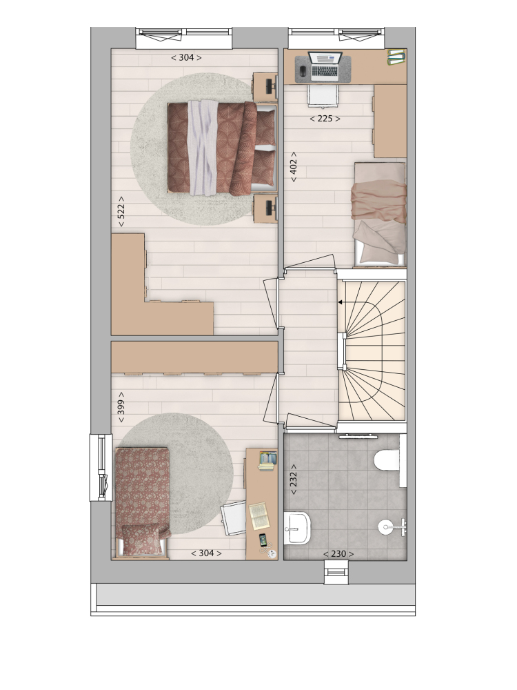 Let op: het door de ontwikkelaar opgegeven gebruiksoppervlak kan afwijken van het daadwerkelijke woonoppervlak! Bij het gebruiksoppervlak kunnen ook bergzolders, bergingen of andere ruimten zijn gerekend, terwijl deze volgens de NEN2580 niet als woonoppervlak zijn aan te merken. Afhankelijk van de mogelijkheden kunt u bijvoorbeeld voor een bergzolder een dakraam toepassen, waardoor deze ruimte eventueel alsnog als woonoppervlak kan worden gerekend. Vraag de makelaar voor meer informatie en eventuele mogelijkheden.