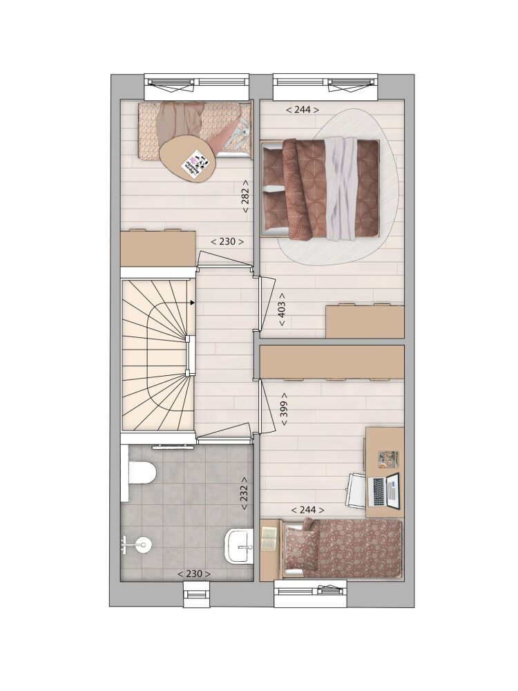 Let op: het door de ontwikkelaar opgegeven gebruiksoppervlak kan afwijken van het daadwerkelijke woonoppervlak! Bij het gebruiksoppervlak kunnen ook bergzolders, bergingen of andere ruimten zijn gerekend, terwijl deze volgens de NEN2580 niet als woonoppervlak zijn aan te merken. Afhankelijk van de mogelijkheden kunt u bijvoorbeeld voor een bergzolder een dakraam toepassen, waardoor deze ruimte eventueel alsnog als woonoppervlak kan worden gerekend. Vraag de makelaar voor meer informatie en eventuele mogelijkheden.