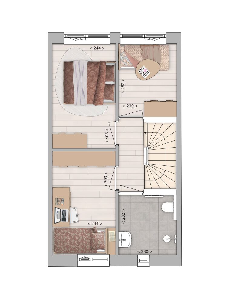Let op: het door de ontwikkelaar opgegeven gebruiksoppervlak kan afwijken van het daadwerkelijke woonoppervlak! Bij het gebruiksoppervlak kunnen ook bergzolders, bergingen of andere ruimten zijn gerekend, terwijl deze volgens de NEN2580 niet als woonoppervlak zijn aan te merken. Afhankelijk van de mogelijkheden kunt u bijvoorbeeld voor een bergzolder een dakraam toepassen, waardoor deze ruimte eventueel alsnog als woonoppervlak kan worden gerekend. Vraag de makelaar voor meer informatie en eventuele mogelijkheden.