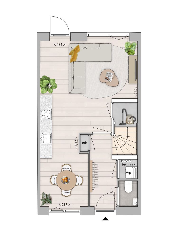 De hoge gevel maakt deze tussenwoning extra speciaal. Even binnenkijken? Via de voordeur aan de voorkant stap je in de hal met toegang tot het toilet, meterkast, technische ruimte, deur naar de woonkamer en trap naar de 1e etage. Het woongedeelte is een open ruimte met plek voor een fijne leefkeuken. Creëer aan de achterkant een lekkere zithoek en via de openslaande deur stap je zo in je heerlijke tuin! In de houten berging heb je extra bergruimte.