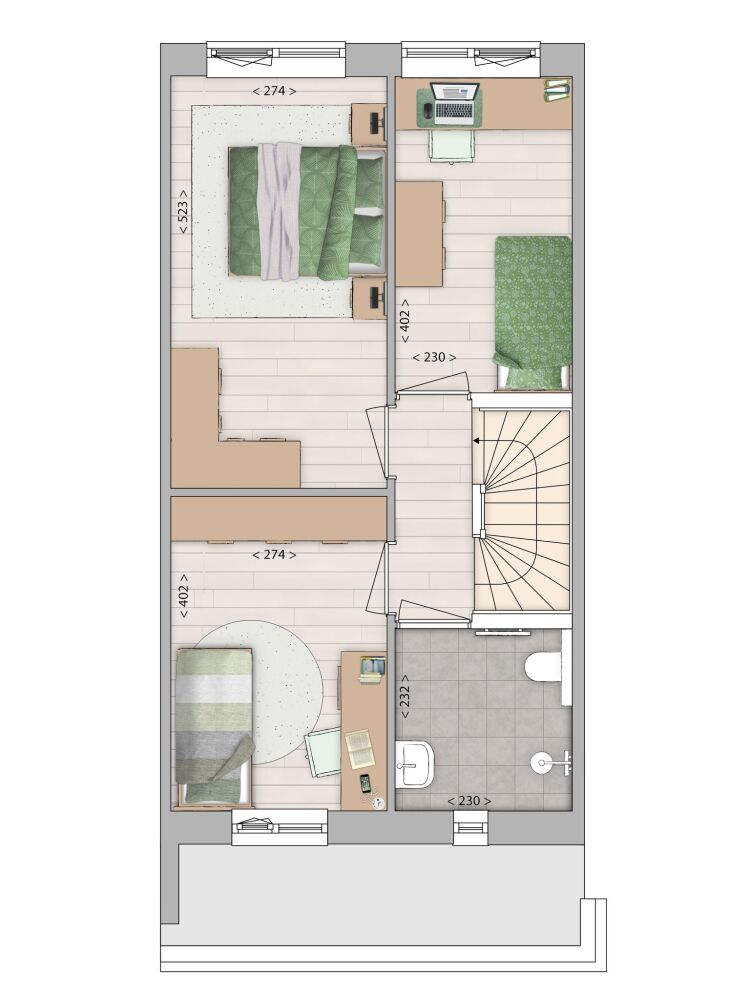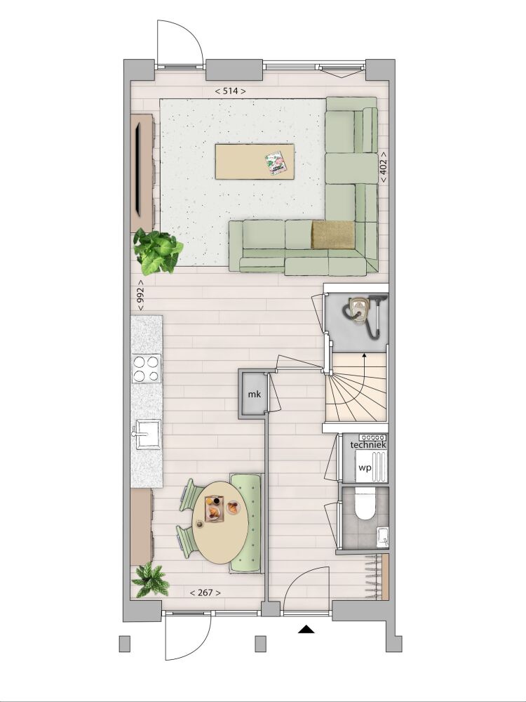 Let op: het door de ontwikkelaar opgegeven gebruiksoppervlak kan afwijken van het daadwerkelijke woonoppervlak! Bij het gebruiksoppervlak kunnen ook bergzolders, bergingen of andere ruimten zijn gerekend, terwijl deze volgens de NEN2580 niet als woonoppervlak zijn aan te merken. Afhankelijk van de mogelijkheden kunt u bijvoorbeeld voor een bergzolder een dakraam toepassen, waardoor deze ruimte eventueel alsnog als woonoppervlak kan worden gerekend. Vraag de makelaar voor meer informatie en eventuele mogelijkheden.