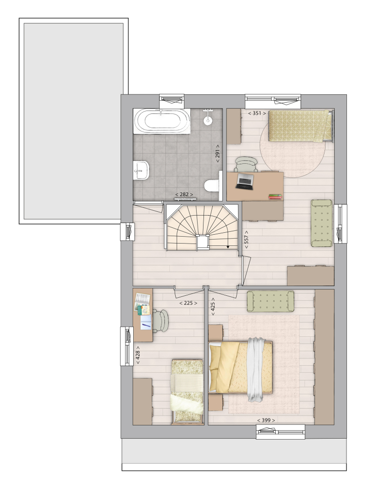 Let op: het door de ontwikkelaar opgegeven gebruiksoppervlak kan afwijken van het daadwerkelijke woonoppervlak! Bij het gebruiksoppervlak kunnen ook bergzolders, bergingen of andere ruimten zijn gerekend, terwijl deze volgens de NEN2580 niet als woonoppervlak zijn aan te merken. Afhankelijk van de mogelijkheden kunt u bijvoorbeeld voor een bergzolder een dakraam toepassen, waardoor deze ruimte eventueel alsnog als woonoppervlak kan worden gerekend. Vraag de makelaar voor meer informatie en eventuele mogelijkheden.