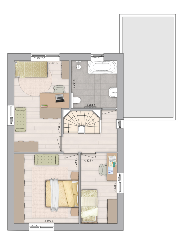 Let op: het door de ontwikkelaar opgegeven gebruiksoppervlak kan afwijken van het daadwerkelijke woonoppervlak! Bij het gebruiksoppervlak kunnen ook bergzolders, bergingen of andere ruimten zijn gerekend, terwijl deze volgens de NEN2580 niet als woonoppervlak zijn aan te merken. Afhankelijk van de mogelijkheden kunt u bijvoorbeeld voor een bergzolder een dakraam toepassen, waardoor deze ruimte eventueel alsnog als woonoppervlak kan worden gerekend. Vraag de makelaar voor meer informatie en eventuele mogelijkheden.