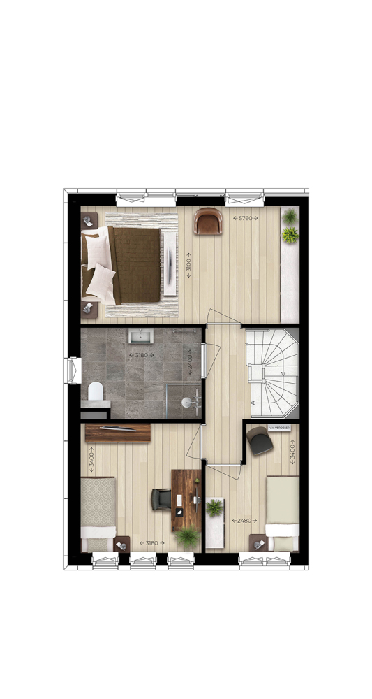 Op de eerste verdieping tref je naast de badkamer 3 ruime slaapkamers aan. De tweede verdieping bevat de technische ruimte en is verder vrij indeelbaar, bijvoorbeeld met een extra slaapkamer of werkkamer. Zie jij jezelf al genieten van de rust en ruimte in deze woning?
