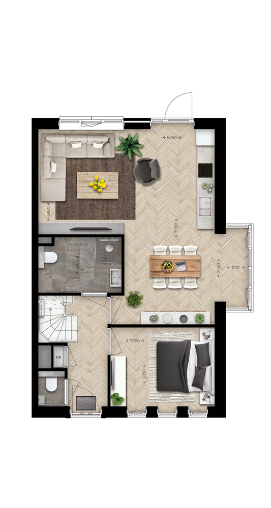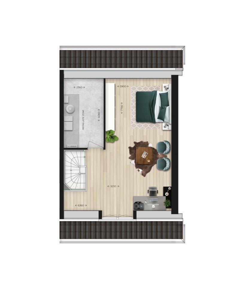 Grote vrij in te delen eerste verdieping, separate technische ruimte met warmtepomp, mechanische ventilatie en warmte terugwinnings- systeem. De eerste verdieping kun je naar eigen smaak inrichten, bijvoorbeeld als slaapkamer of een hobbyruimte.