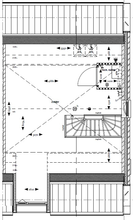 Aparte technische ruimte met opstelplaats van de warmte terugwin unit.