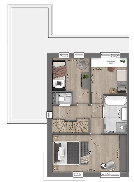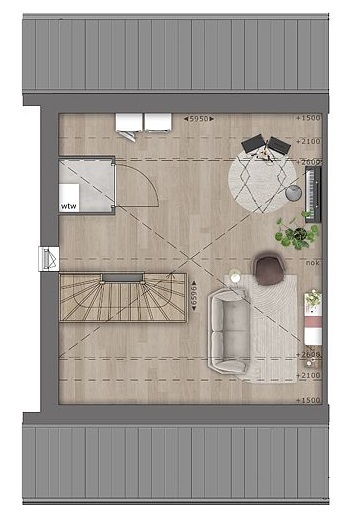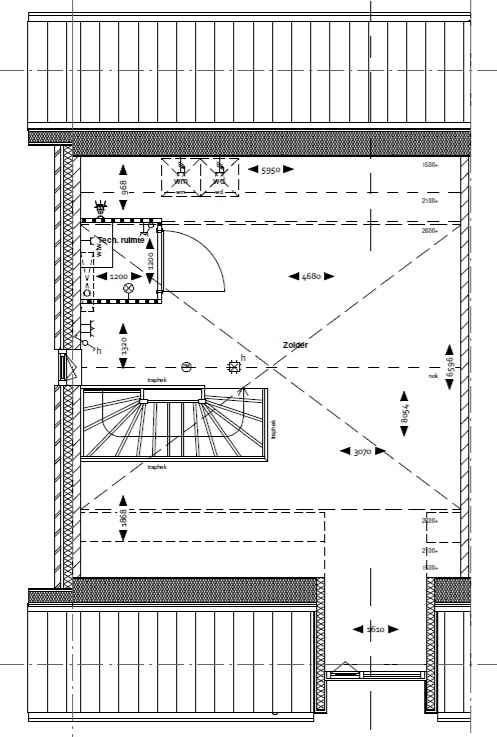 Grote open ruimte met dakkapel, waar het goed mogelijk is om nog een slaapkamer te realiseren. Aansluitpunt voor de wasmachine en de droger. De bouwnummers 3, 10 16 en 21 hebben geen dakkapel op de 2e verdieping.