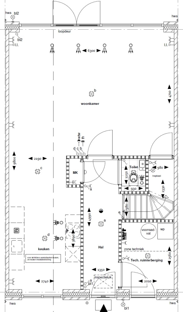 In de hal bevinden zich ook de trap en het toilet (keuzes nog te maken, hoe fijn!).