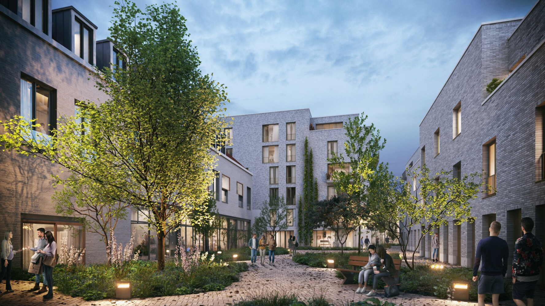 De ontmoetingsruimte wordt een plek waar bewoners en buurtgenoten activiteiten organiseren of gezellig langsgaan voor een kopje koffie. Parkeren kan in de ondergrondse parkeergarage. Tussen de woongebouwen vind je de de gezamenlijke binnentuinen die een oase van rust bieden. Extra bomen en planten leveren een bijdrage aan de biodiversiteit. Het groen wordt een echte verbinder en de ideale plek voor een gezellig buitenleven.