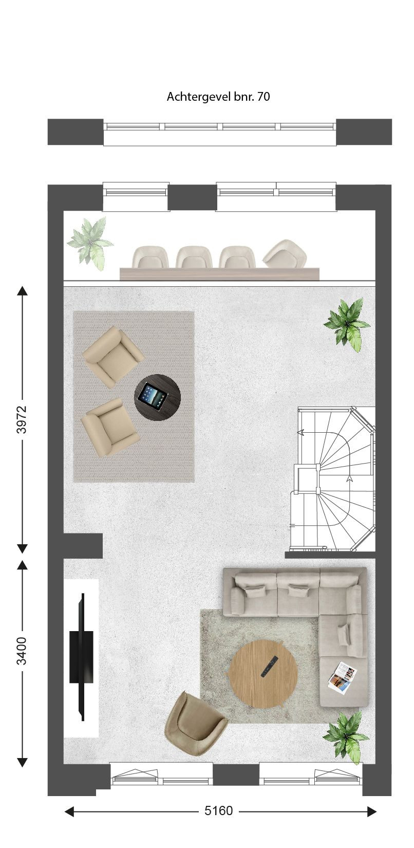 • Grote ramen tot aan de grond aan achterzijde