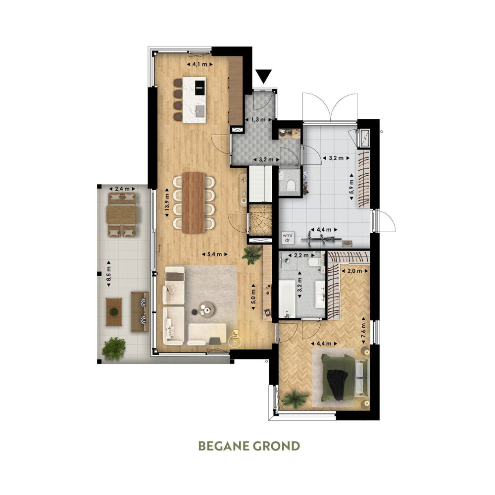 Met een woonoppervlakte van 255 m² biedt deze parkvilla een doordachte indeling die zich aanpast aan jouw levensstijl. De royale leefruimtes zijn perfect voor ontspanning en samenzijn, terwijl de flexibele indeling ruimte biedt voor een kantoor of logeerkamer. Het licht dat door de grote ramen binnenstroomt, creëert een warme en uitnodigende sfeer. De inpandige berging zorgt ervoor dat je spullen netjes opgeruimd zijn, terwijl de vloerverwarming bijdraagt aan een aangenaam binnenklimaat.