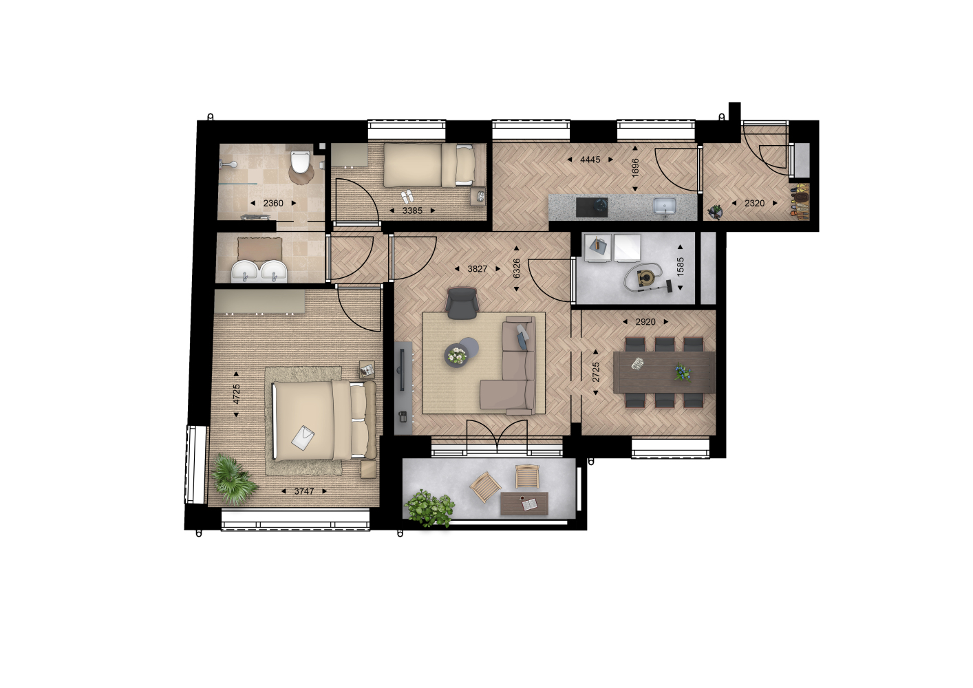 Kamers 3 kamers (2 slaapkamers)