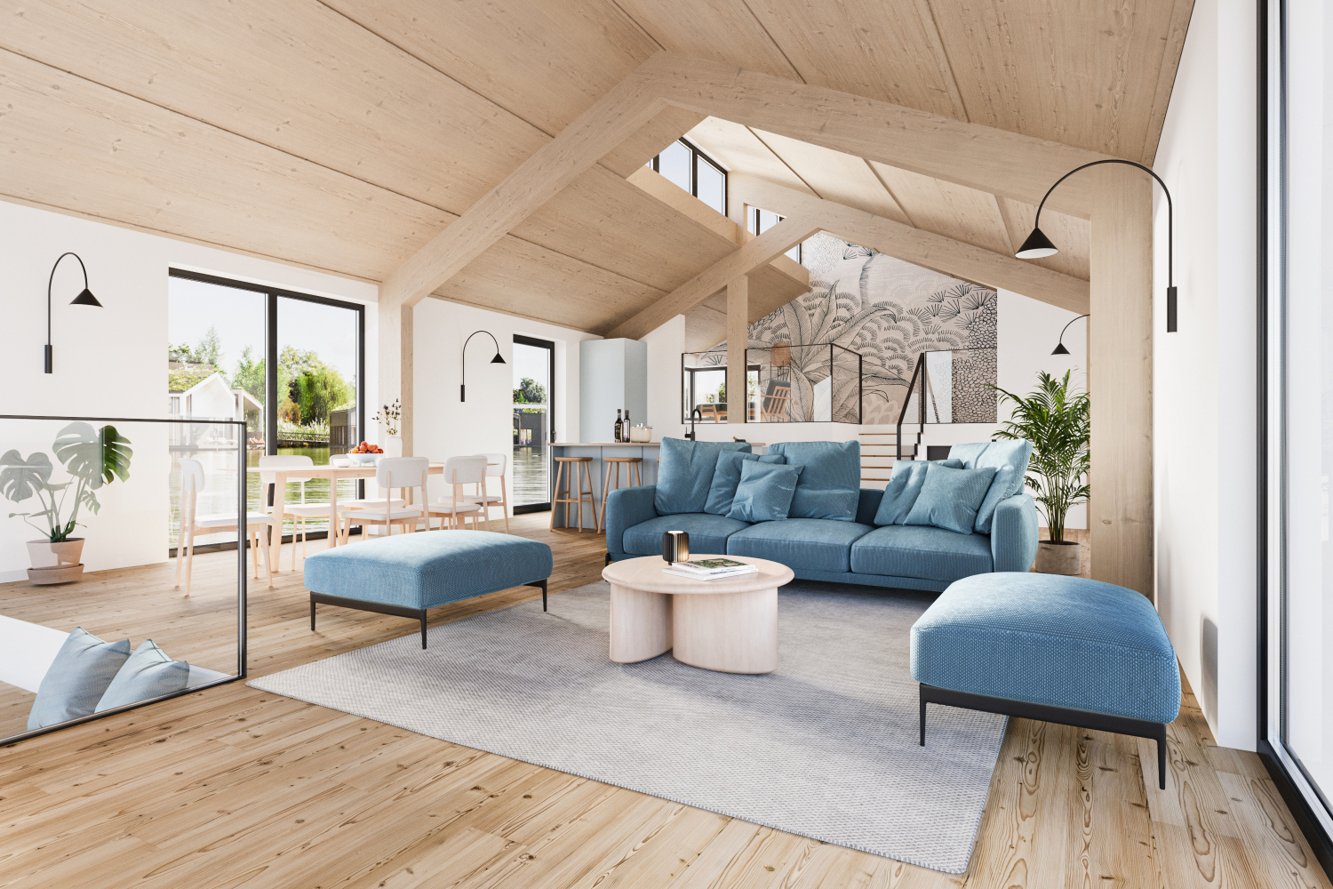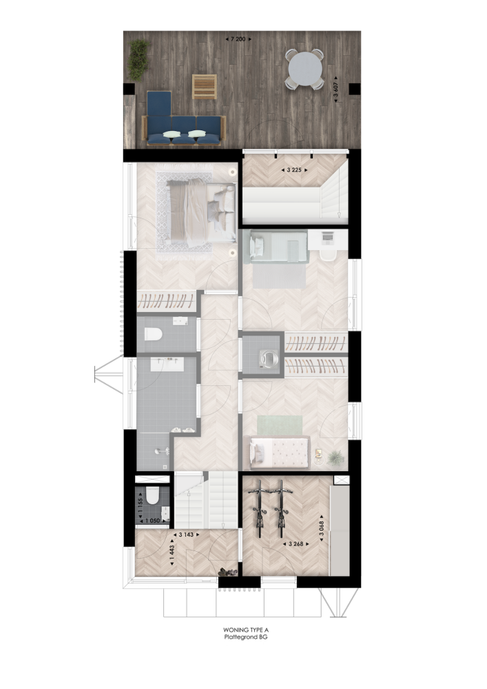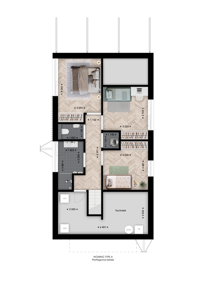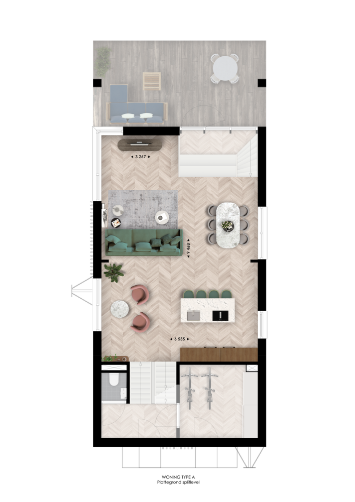 Woningtype A heeft een splitlevel indeling met vide, wat zorgt voor hoogte, licht en karakter. Je woning heeft een gezellige zitkuil en je kunt kiezen voor een extra werkplek, een balkon aan het water of het samenvoegen van slaapkamers. Buiten wacht je privésteiger of terras: een plek voor koffie in de ochtendzon of je voeten in het water.