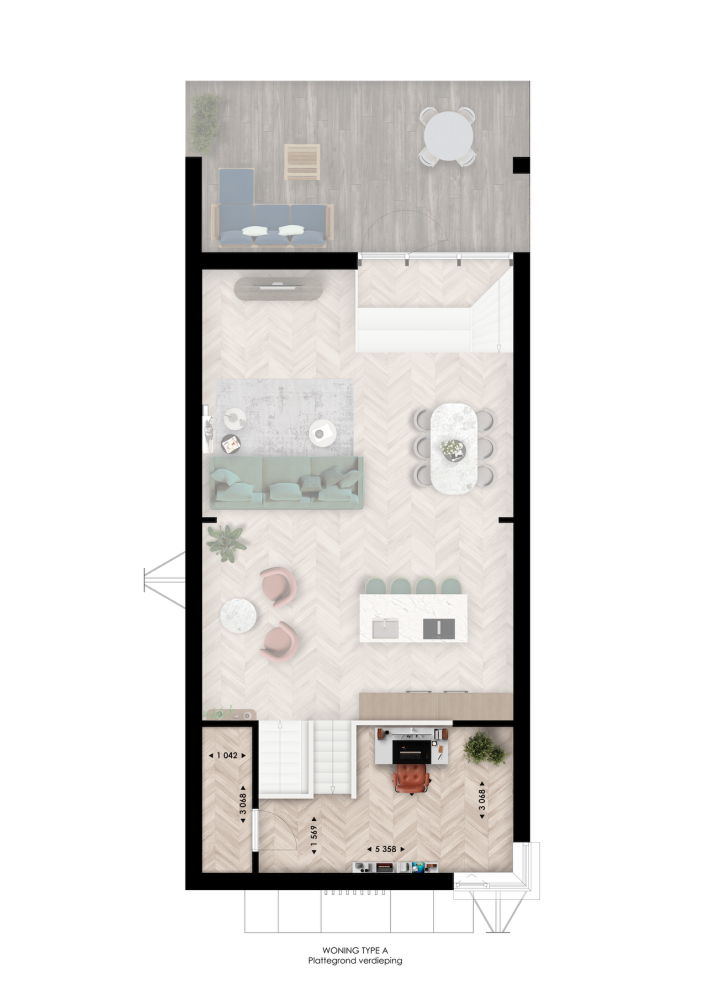 Woningtype A heeft een splitlevel indeling met vide, wat zorgt voor hoogte, licht en karakter. Je woning heeft een gezellige zitkuil en je kunt kiezen voor een extra werkplek, een balkon aan het water of het samenvoegen van slaapkamers. Buiten wacht je privésteiger of terras: een plek voor koffie in de ochtendzon of je voeten in het water.