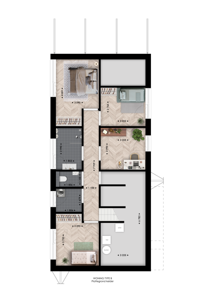 Woningtype B is ruim en veelzijdig: met vier slaapkamers, een vliering én optionele indelingsvarianten. Denk aan een extra werkkamer, een lift, het samenvoegen van slaapkamers, Franse balkons of een balkon aan het water. Via je privésteiger of terras stap je zo in je kajak of geniet je van het uitzicht terwijl de kinderen op ontdekkingstocht gaan.