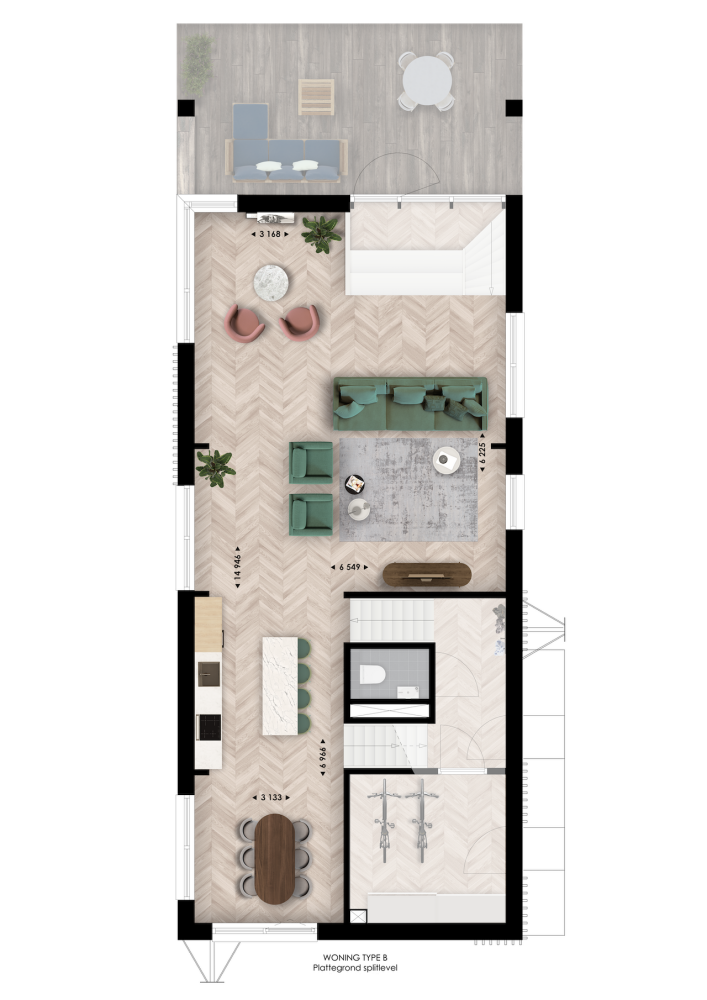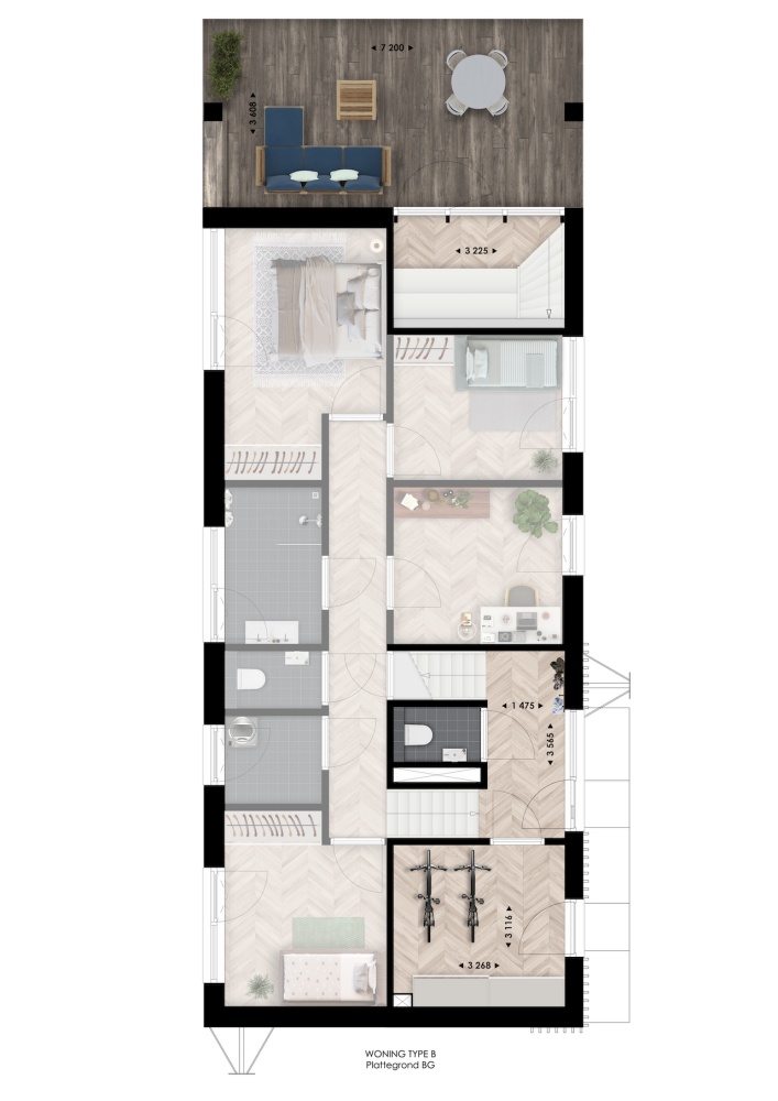 Woningtype B is ruim en veelzijdig: met vier slaapkamers, een vliering én optionele indelingsvarianten. Denk aan een extra werkkamer, een lift, het samenvoegen van slaapkamers, Franse balkons of een balkon aan het water. Via je privésteiger of terras stap je zo in je kajak of geniet je van het uitzicht terwijl de kinderen op ontdekkingstocht gaan.