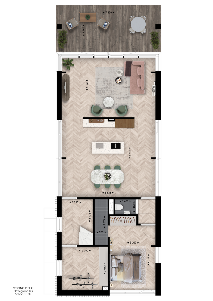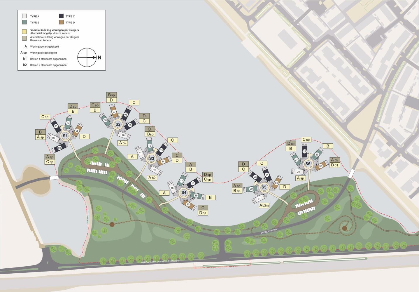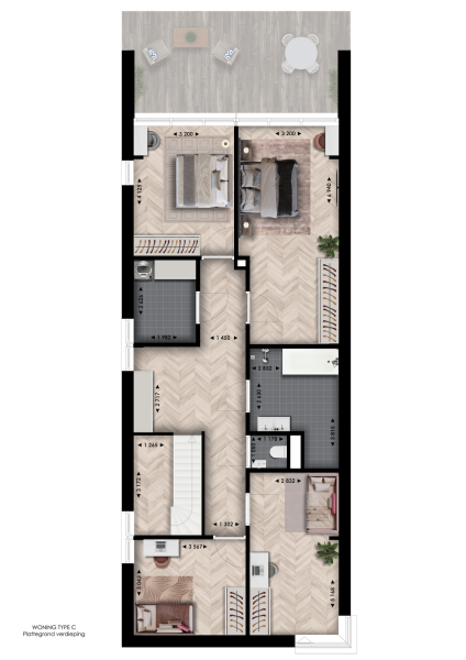 Wonen met het oog op de toekomst: woningtype C combineert gelijkvloers gemak met ruimte boven voor je kinderen, logees, werk of hobby. Je kunt kiezen voor een vide, lift, extra werkruimte, een zitkuil en een breed balkon aan de terraszijde. Buiten leef je op je eigen terras of privésteiger, met het kabbelende water als dagelijks decor en rustpunt.