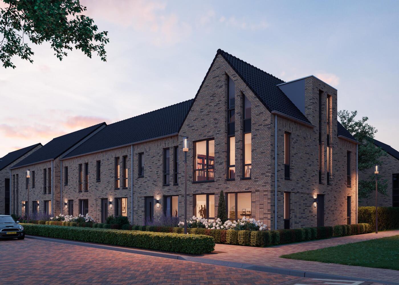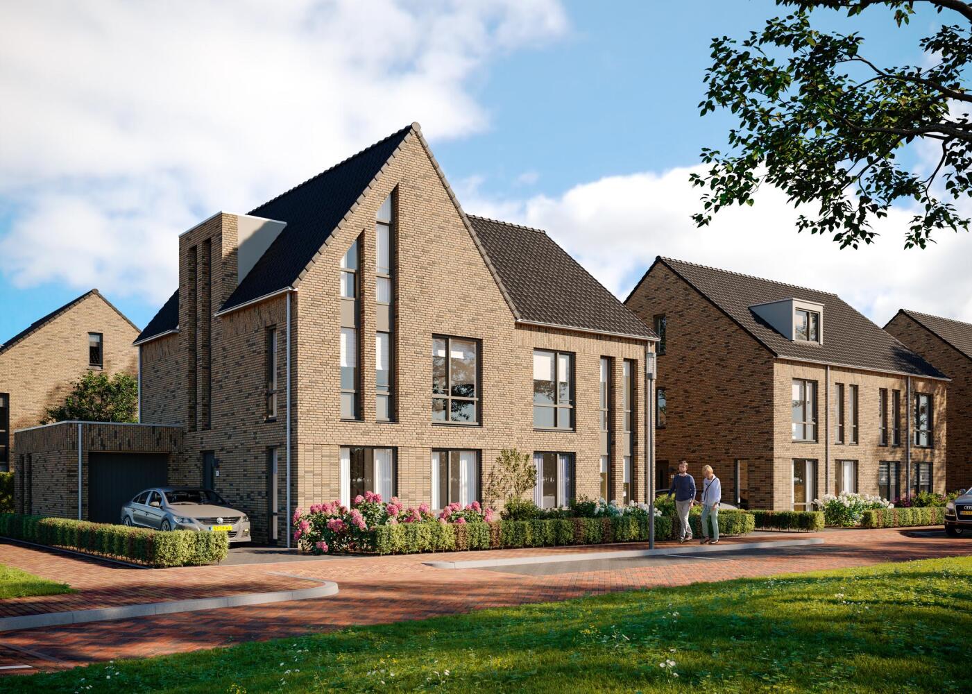 en daar ten opzichte van elkaar te laten verspringen en accenten te leggen met ramen, kapvormen en dakdoorbrekingen, wordt een warme, dorpse sfeer gecreëerd. Hier geniet je ongetwijfeld van jarenlang zorgeloos woongenot.
