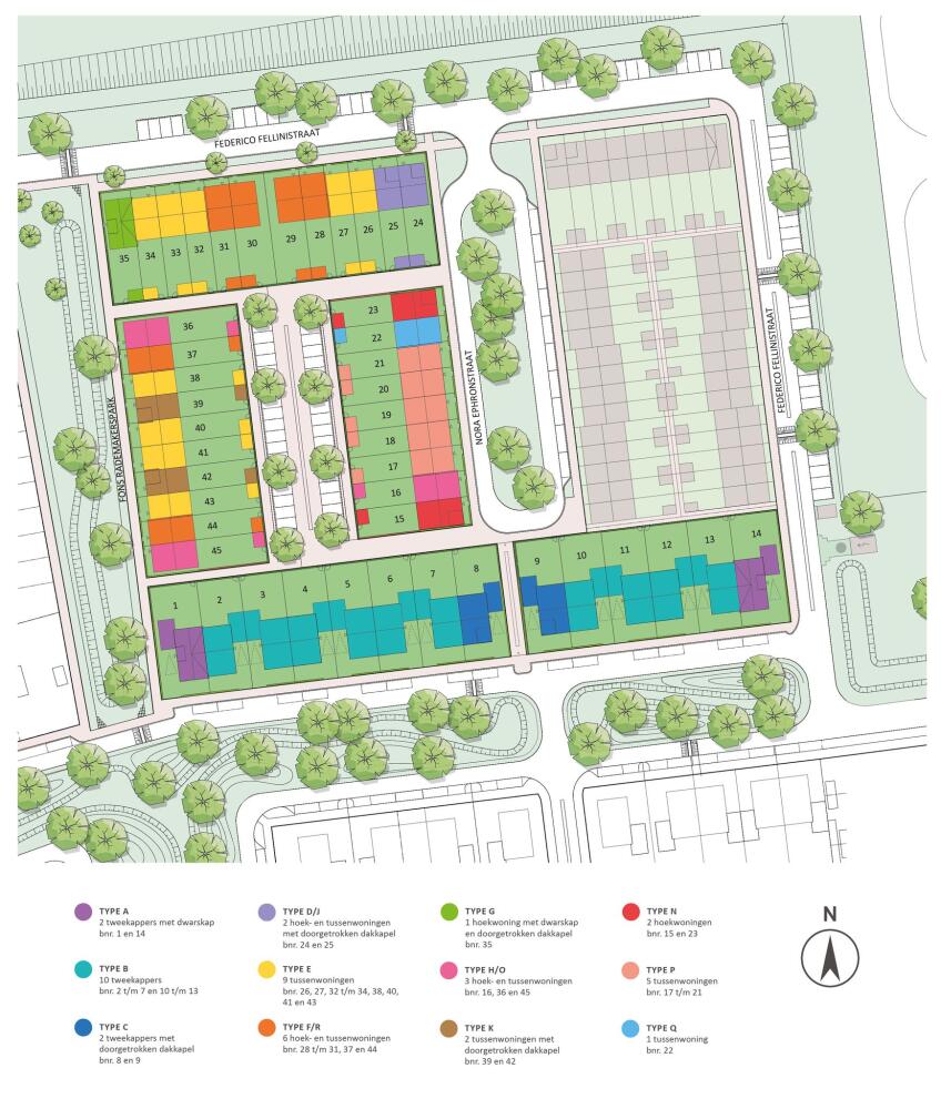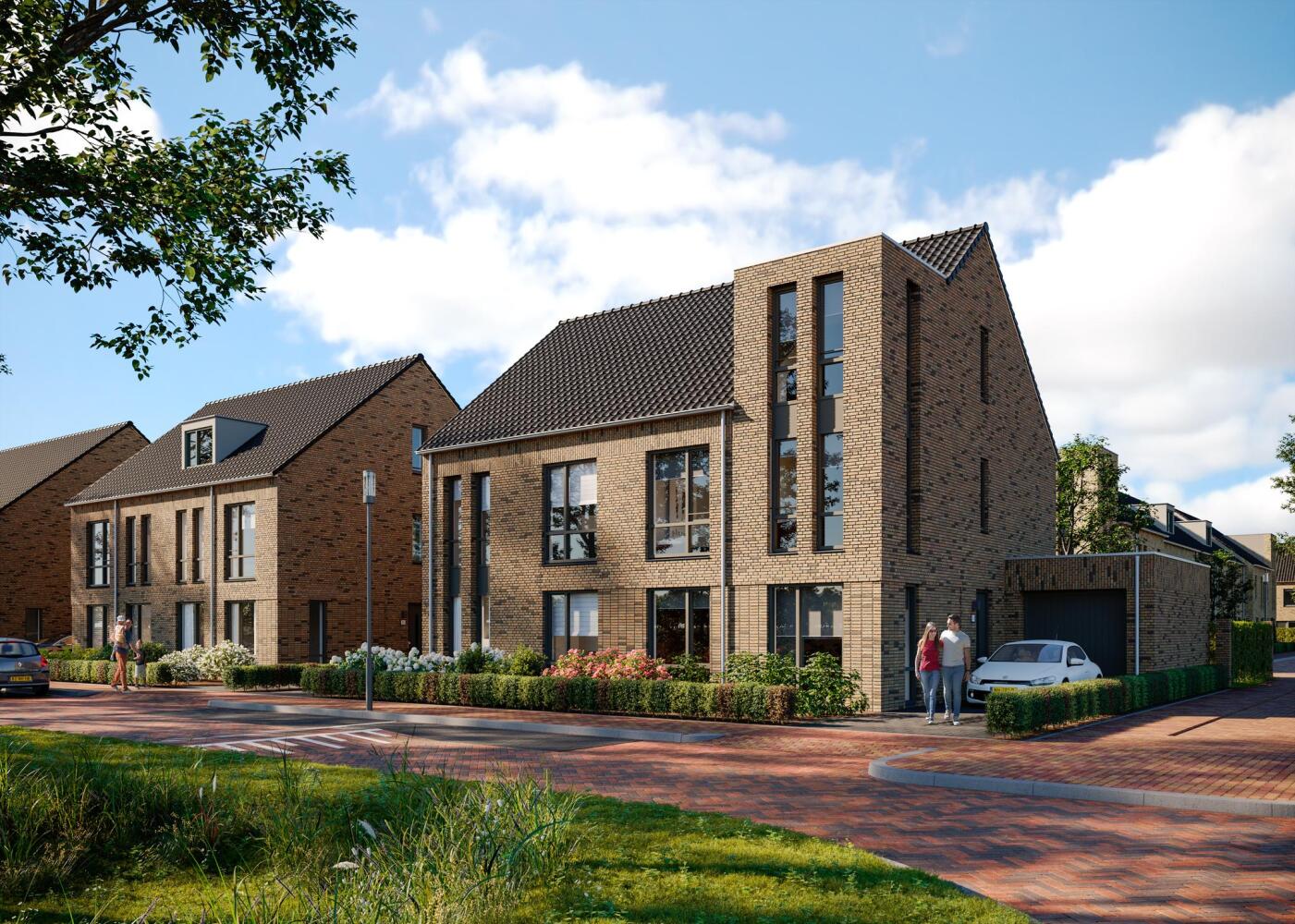 en daar ten opzichte van elkaar te laten verspringen en accenten te leggen met ramen, kapvormen en dakdoorbrekingen, wordt een warme, dorpse sfeer gecreëerd. Hier geniet je ongetwijfeld van jarenlang zorgeloos woongenot.