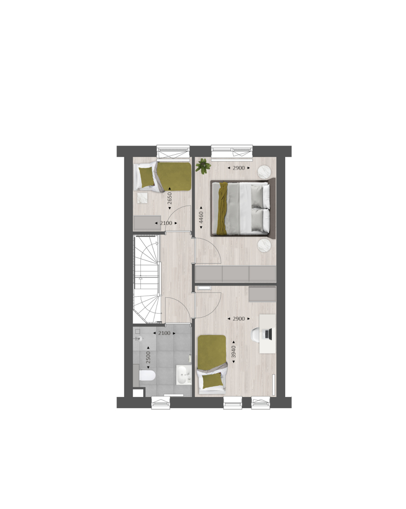 De tweede verdieping biedt je een zee aan ruimte. Hier vind je de aansluitingen voor de wasapparatuur en heb je eventueel de mogelijkheid om een aparte wasruimte te maken en een thuiskantoor of extra slaapkamer met dakkapel aan de voor- én/of achterzijde.